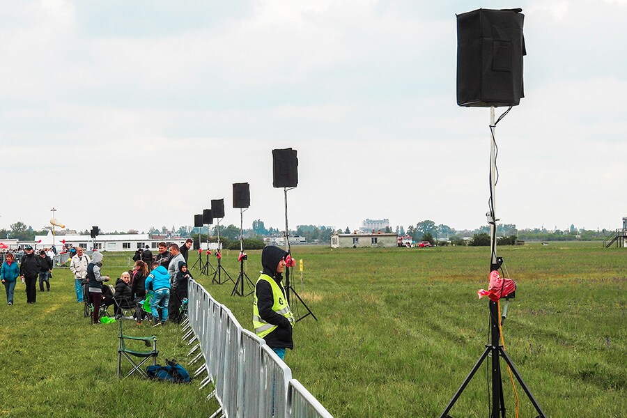 “We had to consider that there may be up to 100,000 spectators in the main area and all of them had to hear and understand announcements, even when aircraft were passing and in bad weather like wind and rain. The speakers could also only be positioned along the boundary of the spectator area.”