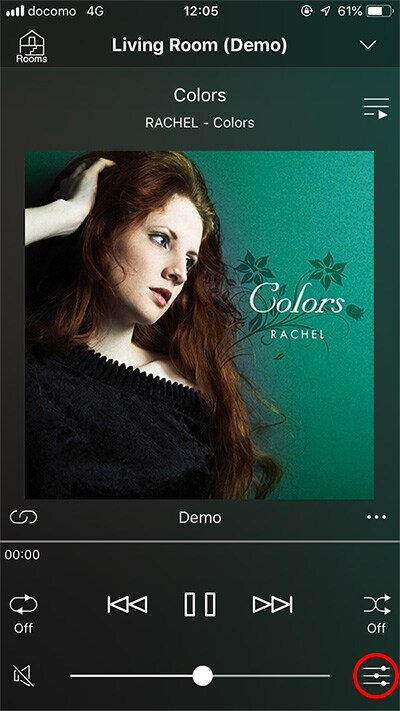 2. Tryck på markeringen med röd ring i vyn för uppspelning i ”MusicCast CONTROLLER”.