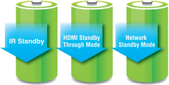 Yamaha receivers är miljövänliga med en låg strömförbrukning i standby. 3W i IR Standby (5.0W i HDMI Standby Through läge, 2.2W i Network Standby läge).