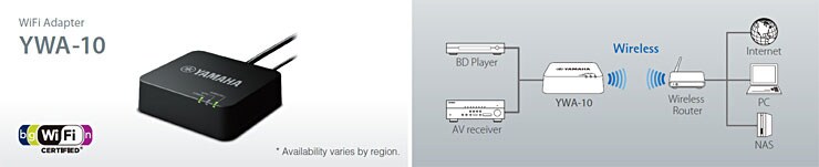 Denna receiver har en extra USB anslutning för att ge ström till YWA-10 WiFi-adapter (extra tillbehör). Med YWA-10 inkopplad du kan strömma musik trådlöst via en router från nätverkskomponenter som PC eller NAS.