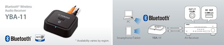 RX-V775 har en extra USB anslutning för att ge ström till YBA-11 Bluetooth Wireless Adapter (extra tillbehör). Med YBA-11 inkopplad kommer du att kunna strömma musik trådlöst från en Bluetooth-kompatibel smartphone, tablet eller PC. Inget hemnätverk behövs för att använda YBA-11 eftersom den ansluts din en digital ingång.