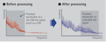 När musik kodas till ett digitalt komprimerat format som MP3, blir frekvensåtergivningen lidande. Yamahas Compressed Music Enhancer använder sofistikerad digital signalbehandling med exklusiva algoritmer för att återställa det som gick förlorat, så att musiken alltid låter som det ska.