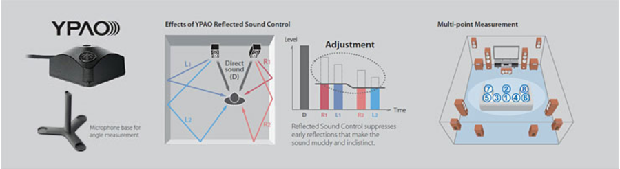 - YPAO™-R.S.C. (Reflected Sound Control) sound optimisation with 3D and speaker angle Measurement