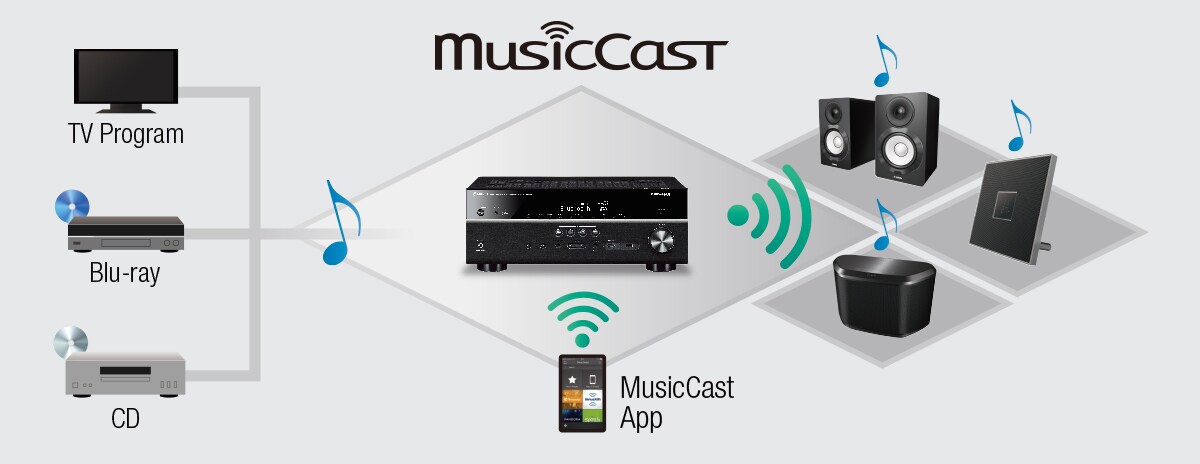MusicCast är en revolution inom nätverksljud. Du kan använda alla dina MusicCast produkter tillsammans - eller var och en för sig, du bestämmer. Du kontrollerar allt från en och samma app, designad för att vara innovativ, snabb och enkel att använda. Om du väljer en soundbar, en trådlös högtalare, en AV Receiver eller HiFi komponenter spelar ingen roll, du väljer och matchar ihop det som passar dig och ditt hem bäst. Du kan även senare bygga ut ditt system. MusicCast ger alla, all musik, överallt.
