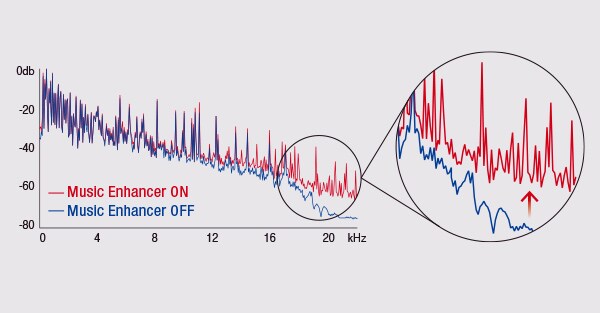 När musik kodas till ett digitalt komprimerat format som MP3 blir frekvensåtergivningen lidande. Yamahas Compressed Music Enhancer använder sofistikerad digital signalbehandling med exklusiva algoritmer för att återställa det som gick förlorat, så att musiken alltid låter som den ska.