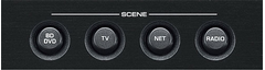 Med en enda knapptryckning kan SCENE slå på AV-receiver och väljer ingångskälla och DSP-läge. Du kan förinställa in knapparna för olika källor genom att välja en källa och DSP-läge och sedan trycka på en SCENE knapp i mer än tre sekunder. Hur enkelt och smidigt som helst!