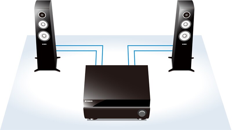 RX-V385 kan bi-amp kopplas så att dubbla förstärkare kopplas till fronthögtalarna. (L, R) får separat drivning av diskant- och baselement från oberoende förstärkare. Förutom att detta ger högre effekt förhindrar det interferens mellan höga och låga frekvenser. Det resulterar i att fronthögtalarna levererar ännu bättre ljud.