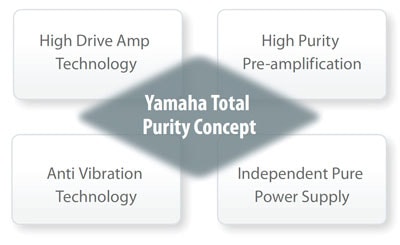 The Total Purity Concept, which Yamaha has been cultivating for many years, encompasses high drive amp technology, high purity pre-amplification, anti-vibration technology and independent pure power supplies. All models have a fully discrete power amplifier that helps to minimise distortion. They also adopt independent pure power supplies, allowing dedicated power supplies for the analogue and digital circuitry to prevent digital noise from affecting analogue circuitry. The anti-vibration heatsinks are designed to suppress vibration from transistors and sound pressure. Independent power supplies for the DACs are designed to further eliminate noise on certain models. Down to every detail, these AV receivers are designed with full emphasis on the highest possible sound quality.