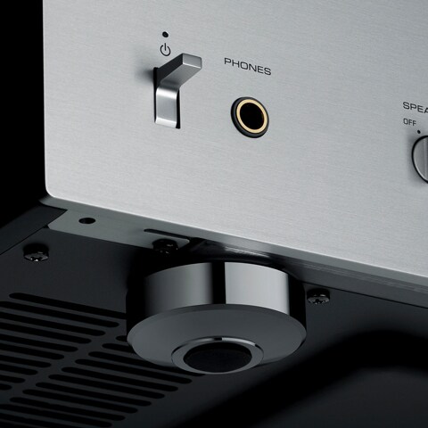 A-S1200 förtjänar etiketten ”Premium Hi-Fi” tack vare det mekaniska jordningskonceptet som ärvs från både A-S2200 och A-S3200. Fötternas bultar är svetsade direkt vid huvudchassit medan den stora kylflänsen, effekttransformatorn och blockkondensatorerna är bultade direkt vid chassit. Det här gör att du undviker oönskade vibrationer och får en uttrycksful och rytmisk bas med en riktig groove.