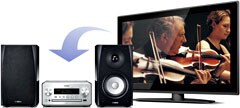 Inga kablar - trådlöst! AirPlay ger dig bekvämligheten med trådlös uppspelning från din iPod / iPhone / iPad. Genom att använda Compressed Music Enhancer, kan du njuta av komprimerade ljudfiler med hög ljudkvalitet.