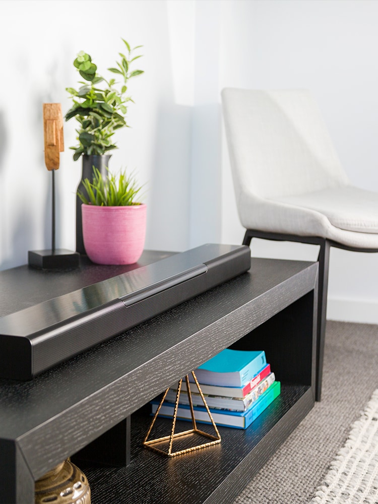Den smidiga profilen gör att du kan placera den framför TV:n utan att den skymmer skärmen.