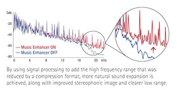 När musik är kodad till ett digitalt komprimerat format som MP3, blir frekvensgången lidande. Yamahas Compressed Music Enhancer använder sofistikerad digital signalbehandling med exklusiva algoritmer för att återställa det som förlorats, så musiken alltid låter som det ska.