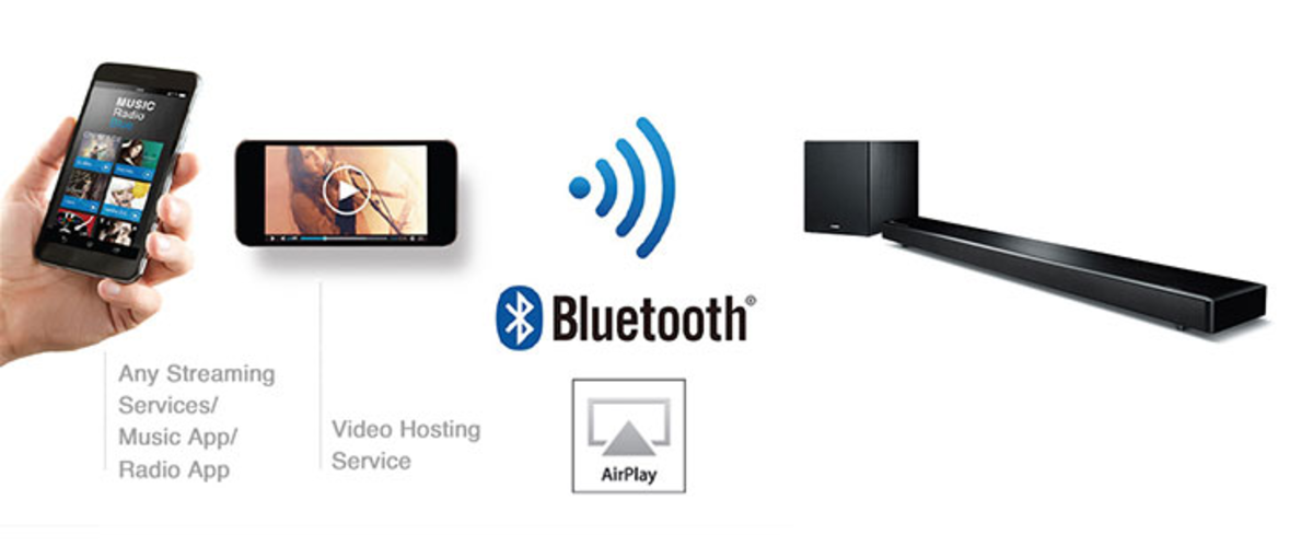 YSP-2700 är utrustad med den senaste Bluetooth tekniken, som gör det enklare än tidigare att trådlöst njuta av musik. YSP-2700 kan inte bara ta emot Bluetooth, du kan även skicka ut Bluetooth. Smidigt om du vill streama musik från YSP-2700 till ett par Bluetooth hörlurar eller till en Bluetooth-högtalare.