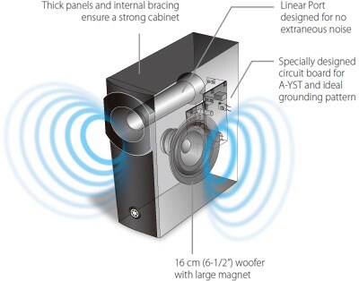 Subwoofern har en stort 16cm element och använder Yamahas Advanced YST teknik för att producera tydligt, kraftfullt basljud. Den linjära porten förbättrar ljudets spridning och är utformad för ge en renare basåtergivning. Både musik och film ljudeffekter återges med en känsla av närvaro.