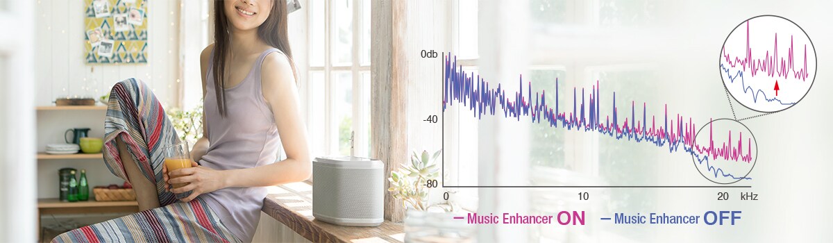 Ljudet är mycket bra, tack vare tvåvägshögtalare som i kombination med Yamahas DSP skapar magi. Ett stort passivt element är den hemliga ingrediensen som gör att du kan njuta av djup bas från en så kompakt enhet. Tekniken Music Enhancer återskapar utsläckta höga frekvenser och rättar till murrigt mellanregister, så du får bättre ljud även vid uppspelning av överkomprimerade MP3-filer. Vill du njuta av bästa kvaliteten på ljudet, finns stöd för WAV, FLAC och ALAC. Allt från pop till rock - allt låter som det ska.