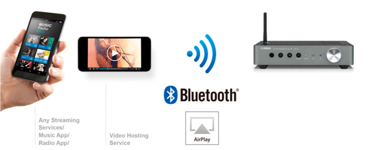 Alla musikkällor du kan spela på din smartphone kan du föra över till MusicCast via Bluetooth eller AirPlay. Du kan spela upp musik från tex. Spotify, radio appar eller YouTube™.
