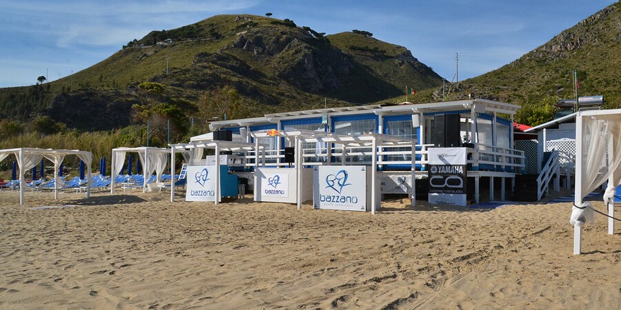Located in the tourist resort of Sperlonga, between Roma and Napoli, Bazzano Beach is a bar and restaurant located on the beach of the same name. Founded 12 years ago, it is a popular destination for those wanting to relax by the sea with good food and good music.