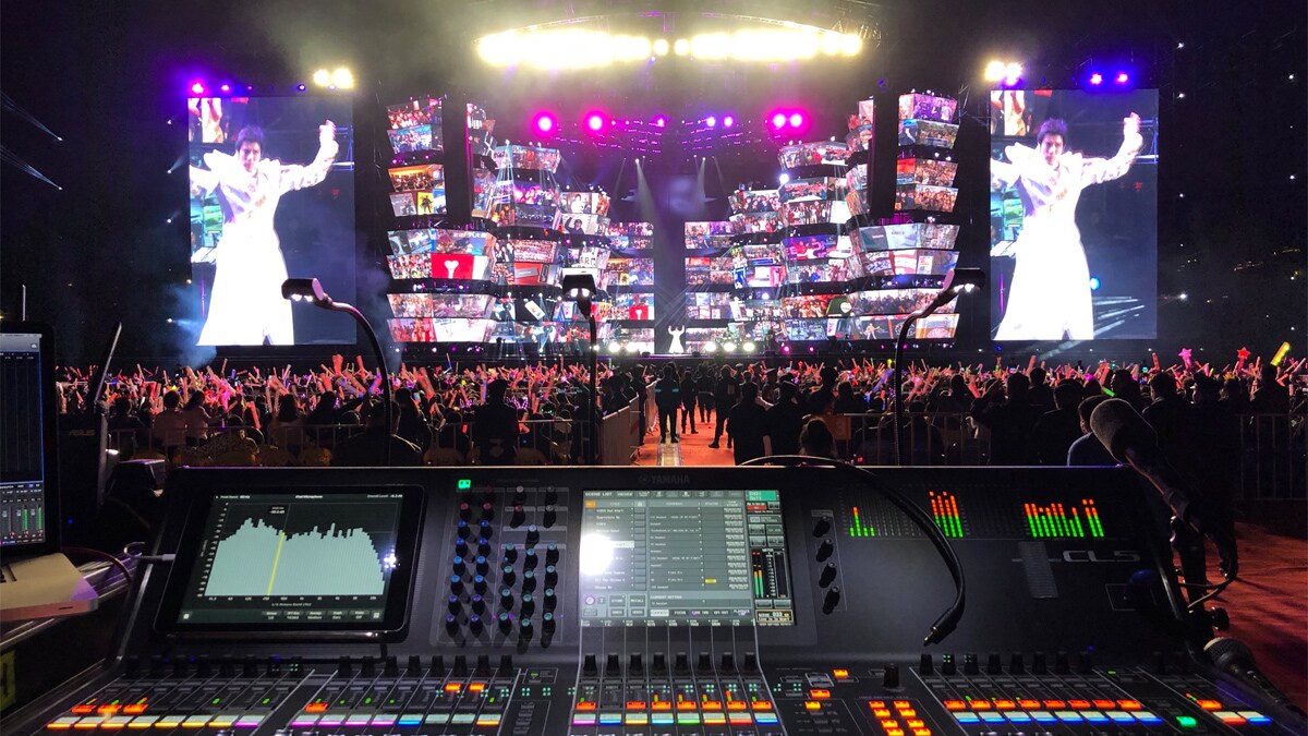Baldwin said the tour averages between 50,000 to 75,000 audience members per show in stadiums all over China and including lights, lasers, remote light sticks, show direction, video crew, camera operators, etc. they have a total of 21 technicians working out at the front of house tent. "I love the fact that I have the smallest setup of anyone at the front of house position but I get to help Leehom and his band create this massive sound! Yamaha has always been a responsible part of my sound."