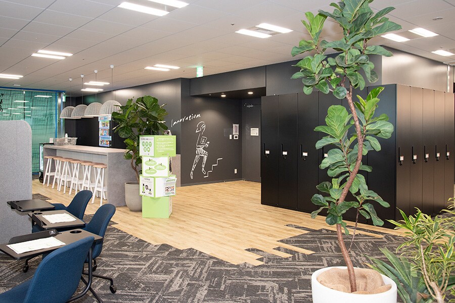 Mr. Washiyama: Nihonbashi Innovation-Base is a place where cross-company task force members can create new business and deepen co-creation with our customers and partners both here at home and abroad. In addition to office space, this base offers digital conference rooms, the first Zoom showcase in Japan, and an open innovation space where ADECIA was introduced this time.