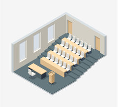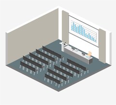 Classrooms of up to 100m² can be covered with an ADECIA Ceiling Solution consisting of two RM-CG microphones, an RM-CR conference processor and VXL1-16P speakers for transparent sound reproduction.
