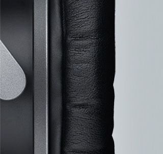 - Slätt syntetiskt läder och stora kuddar med låg motståndskraft garanterar stressfri bärbarhet och höga isoleringsnivåer
