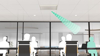 A ceiling array microphone equipped with unique audio signal processing technology that enables high-quality communication