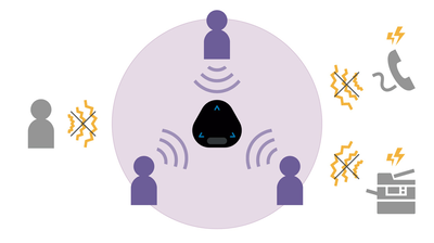 Problem: Open workspaces can be noisy with sounds from colleague chatter, office equipment and nearby meetings. When having remote conference sessions, your conversation can be disrupted by these noises and far-end participants will have difficulty hearing you clearly.