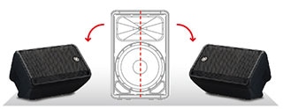 DBR Series speakers feature an optimized 50°wedge angle for floor monitoring. In addition the DBR12 and DBR15's symmetrical shape allows for effortless configuration of a mirror-mode floor monitoring system in either symmetrical or stereo sound field setups.