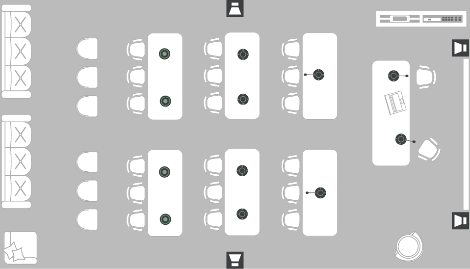 Even when dividing or merging multiple meeting rooms, the ADECIA Ceiling Solution can be configured to adapt to changes in room layout. Presets can be recalled, commands can be send for automation in the space, and the built-in room divider feature makes simple work of sharing audio resources between the different areas.