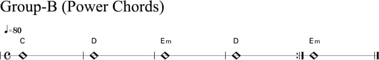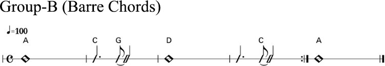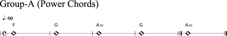 3. Candidate plays the riff pattern with the backing track from the beginning to the end.