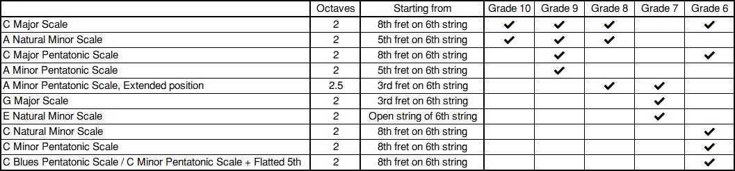 2. For Grades 7 and 6, examiners use a metronome to give the candidate the tempo (♩=120). *For Grades 10 to 8, candidates may play the scales in their own tempo.