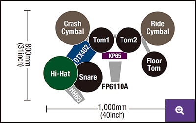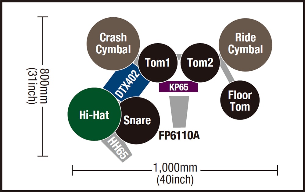 - KP65 kick pad och en äkta Yamaha bastrumpedal FP6110A ger mjuk action och verklig känsla.