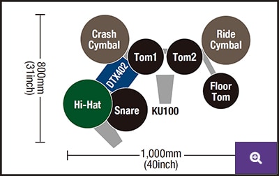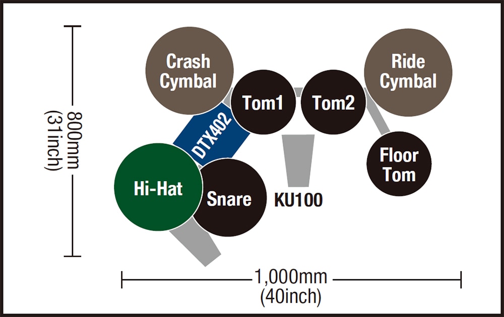 - KU100 kick-enhet reducerar oljud när man spelar på bastrumman.