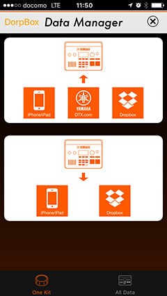 "Data Manager" allows you to download and install new User Kits directly from YAMAHADTX.com. Additionally, Data Manager enables you to backup DTX700 data to your iOS device.