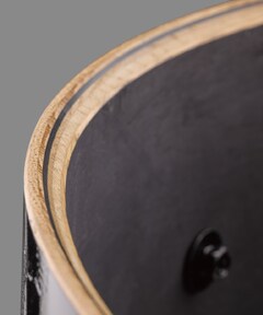 The traditional Japanese finishing technique known as "UZUKURI" has been modified for use on drum shells. In this procedure, the soft areas in the wood grain are sanded and then the whole shell is coated with a thin layer of black paint. The entire surface of the shell is then sanded again before the final coating is applied, in a process that emphasizes the natural beauty of the Oak grain.