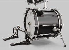 This lifted bass drum produces a more punchy sound and accentuates the sound produced in the core of the shell.