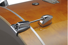 A pipe post stabilizer on the pedal side of the bass drum provides height adjustment and positions the beater so that it strikes the center of the bass drum batter head. A memory clamp on the pipe slides into a special receiver on the bottom of the bass drum, allowing for quick set up and exact height retention.