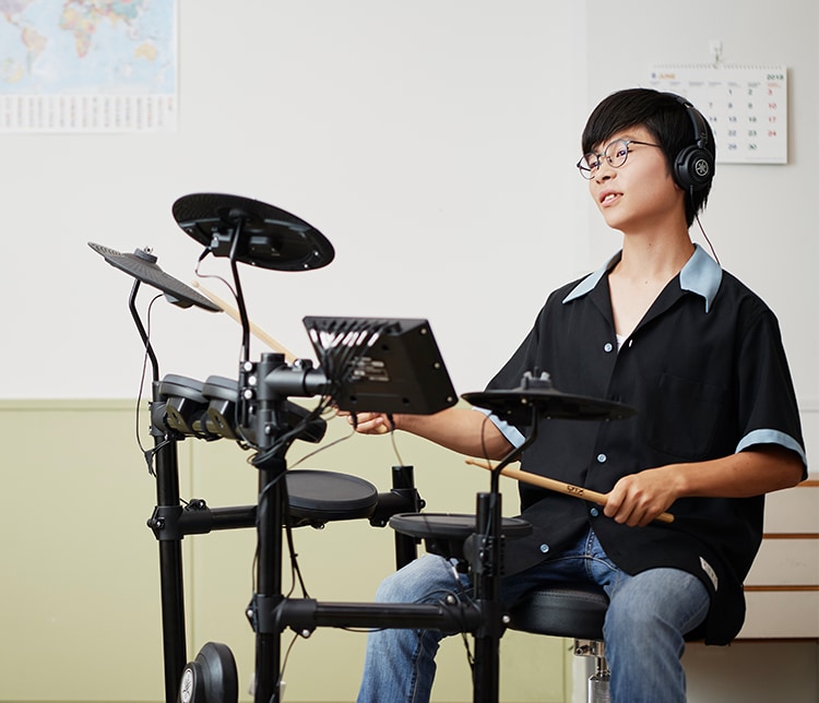 Yamaha vet allt som finns att veta om trummor. Det var så vi kunde producera en kompakt design utan att kompromissa med trummans kärna. Du kan justera positionen och vinklarna på cymbalerna, snaren och pukorna som du vill och utföra i rätt hållning. DTX är utrustad med Yamahas fotpedal, en favorit bland professionella trummisar, och återskapar troget ljudvariationerna av en trumma, inklusive cymbalchoken och rimshot. Höjden på de olika komponenterna kan också modifieras för enkel användning av alla, även små barn.
