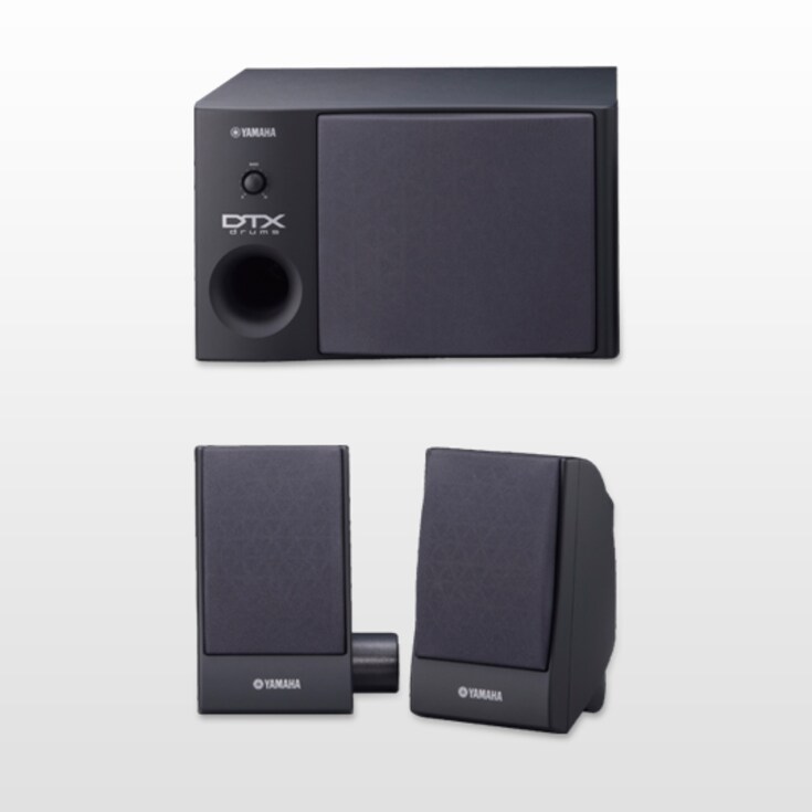 A 2.1-channel monitor system for electronic drums that is designed for home use. It is one of the most compact monitor systems in the world, so it won't take up too much space in your home. It also has a stylish black design that will match well with the room you use it in. The system consists of left and right satellite speakers, which can be attached to a rack, and a subwoofer. These speakers enable you to experience intensely realistic stereo sound that will make you feel like you are performing on an acoustic drum set. Also, this system is perfect for monitoring in the home, with 20W of power for each of the two satellite speakers and 40W of power for the subwoofer.