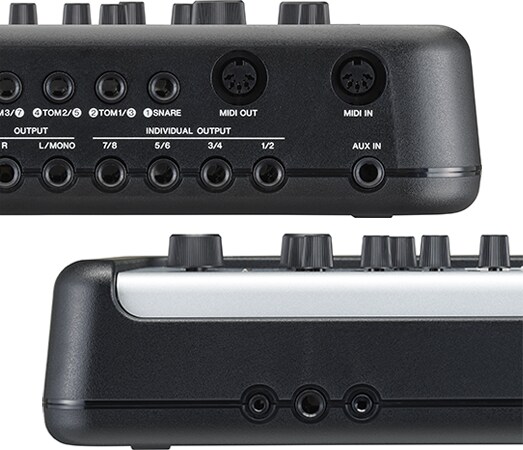 The DTX-PROX is equipped with 8 INDIVIDUAL OUTPUTS and a matrix that allows routing to any output. The two AUX IN sockets are ideal for receiving monitor sound from a PA system, connecting to other musical instruments (standard jack - rear side), and connecting to smart devices (mini jack - front side). The headphone jack is equipped with a standard jack and a mini jack, allowing for highly flexible routing, such as outputting clicks and AUX IN sounds only to the headphones.