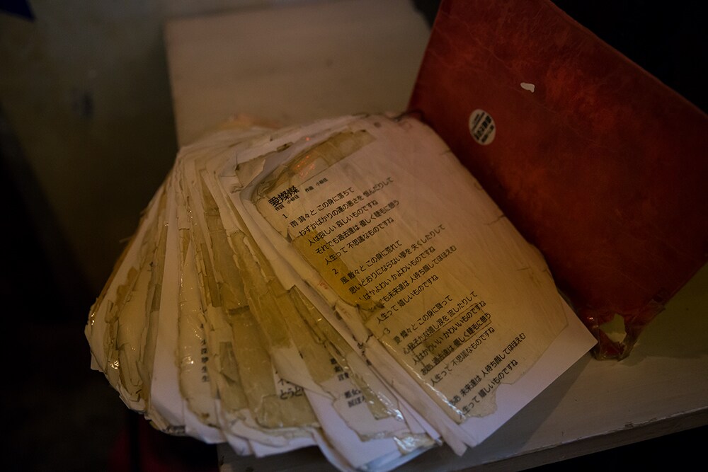 A “songbook” of lyric sheets. With this in hand, many customers sing along with the nagashi.
