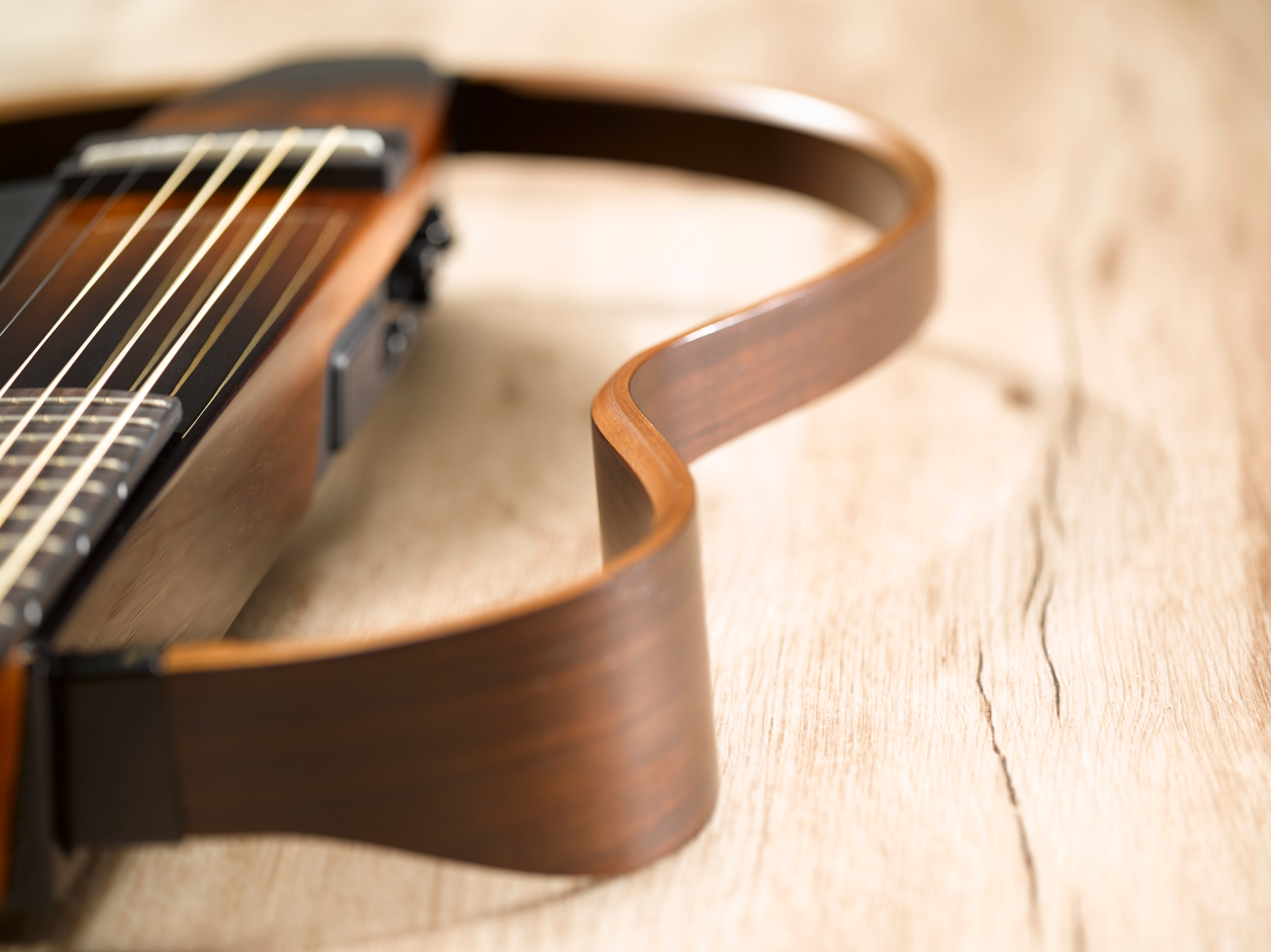 SLG:s kroppslösa konstruktion ger ett naturligt lågt ljud som gör att gitarristen kan spela utan att störa andra, öva sent på kvällen eller spela i vardagsrummet när familjen är hemma. SLG200S är åttio procent tystare än en konventionell akustisk gitarr.