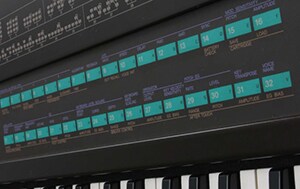 What changed the synth world completely was the arrival of the enormously popular DX7, which utilized LSIs to dramatically reduce the number of parts required and make the instrument more compact. The DX7 featured a flattened operations panel that allowed the audience an unfettered view of the player's hands on the keyboard when on stage. The design eliminated three-dimensional buttons and levers in favor of flat, membrane switches embossed with green graphics, arrayed in a simple layout; an appearance that was intended to make a strong impression on players as the world's first digital synthesizer. The use of membrane switches, something that is rare in instruments, offered many choices in terms of printing coloration, with designers electing to utilize a green that would look attractive against the dark brown body color—the same dark brown as was used for the personal computers that Yamaha was selling at the time. Referred to as "DX green," this was a symbolic color that went on to make occasional appearances in Yamaha synthesizers.