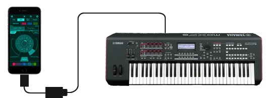 When connected to the Yamaha MOXF Music Production Synthesizer (OS version 1.10) using the Lightning to USB Camera Adapter by Apple, the MOXF becomes the MIDI/Audio interface for the iOS app creating a very powerful music production system.