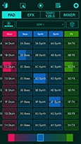 There are 2 modes available, SYNTH mode and Drum mode that work at the same time, e.g. when drum phrase is playing, Analog sound can be selectable and playable with the drum phrase, and vice versa without stopping ongoing music.
