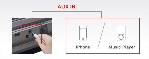 Connect an external audio player to the AUX IN jacks and play along with your favorite tunes. Advanced vocal/melody suppressor lowers the volume of vocals and melody lines of the original recordings, leaving that part open for you to play.