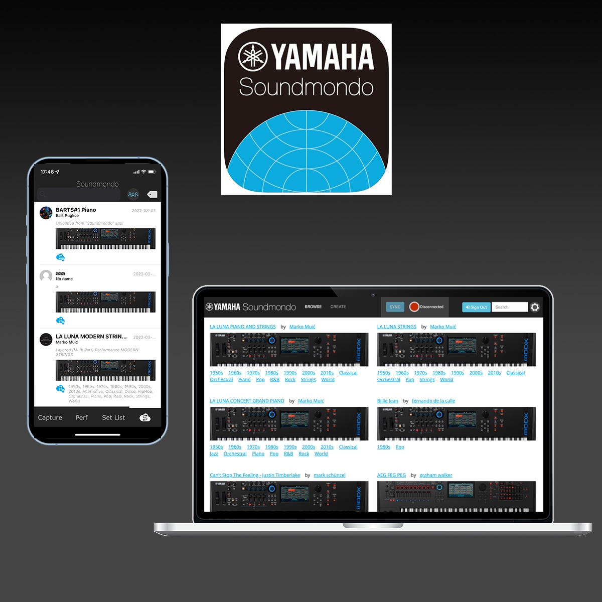 Soundmondo is a social sound sharing network that lets you store and recall MODX+ and MONTAGE Performances and share them with other users. Each stored Performance can be rated, named and given a custom image from your photo library. The Soundmondo app for iOS lets you upload and download new Performances directly to MODX+ with an iOS device.