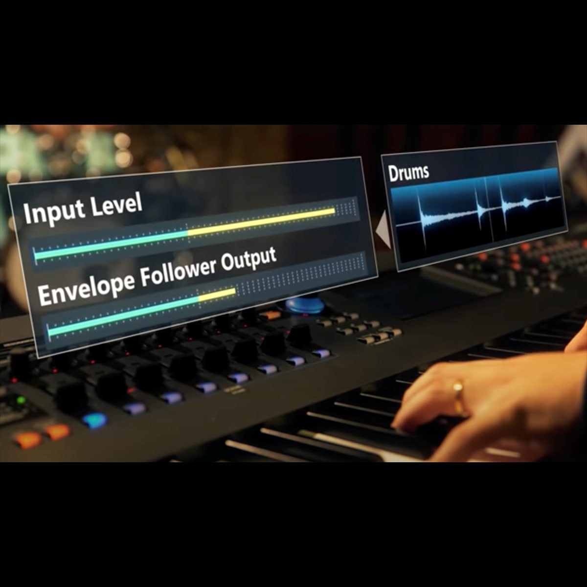 A stereo A/D input allows you to bring external sources like analog synthesizers, vocals and other instruments into the MODX+ motion control system. Which means MODX+ control goes well beyond simple onboard effect processing. Control individual parameters with the physical controls or have MODX+ provide “invisible hands” using Motion Control. Add the Vocoder, Envelope Follower and Auto Beat Sync and it’s like the A/D input on MODX+ becomes an instrument unto itself.