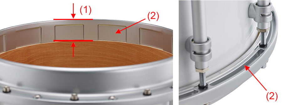 A larger radius at the top of the rim reduces damage to drumsticks when playing rimshots (when the head and rim are struck simultaneously). A thicker rim also increases durability while enhancing rimshot tone.