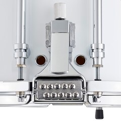 A snare-side aluminum insert ring is standard, preventing shell deformation and maintaining stable pitch even when high-tension tuning is used.